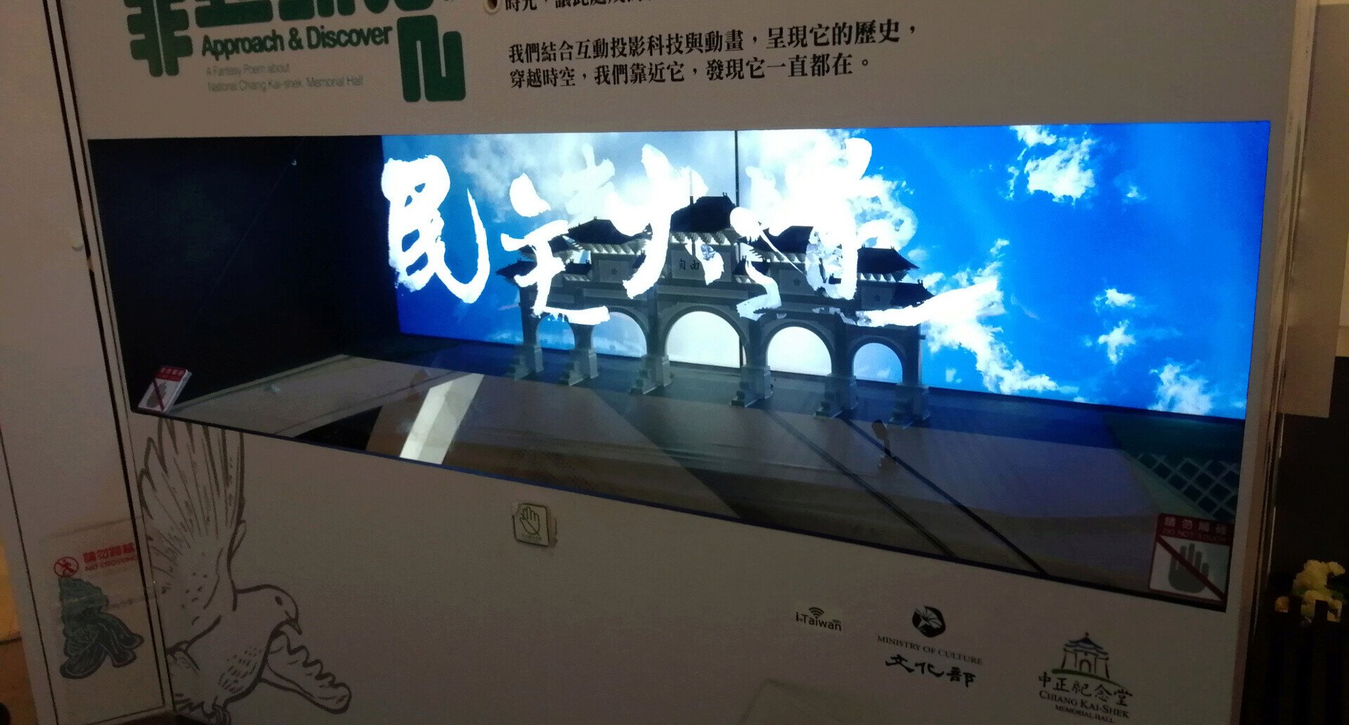 La culture du Taiwan contemporain est présentée dans le Mémorial de Tchang Kaï-chek en partenariat avec le Ministère de la Culture. Plusieurs générateurs d'hologrammes présentent le site du mémorial et son histoire avec un mapping holographique autour de la porte emblématique de l'entrée du site.